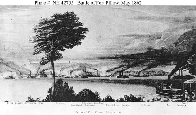 River Defense Fleet and Federal ironclads near Fort Pillow, Tennessee,