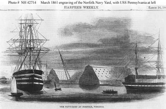 1861, as Confederate forces threatened the Norfolk Navy Yard,